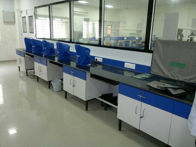 Lab Furniture The Furniture is Classified in various type as may required in Lab depending upon the utility as under… Center Table / Island Table Confirming the specifications as follows : Table is designed with two sided working and center reagent rack at height of 900 mm to make suitable for titration and other work in chemical analysis on standing position.... [Read More] Lab Table / Working Bench - with Pedestal Frame Lab Table / Working Bench - with Skirtings Lab Tables confirming to the international standard and norms are aesthetically designed. These are with Skirting for utility and aesthetic reasons, as per the requirement. For details and specification .......[Read More] Corner Table Table Top made of 18 mm to 20 mm Thick Black Granite supported with Marine Ply Sheet. The module is made of 18 gauge CICA/ GI Sheet finished with powder coating. Frame : Pedestal 30x30mm Powder Coated. Anti-Vibration Table Anti-Vibration Table Anti Vibrating bench suitable for micro weighing scales to absorb the vibrations by sand damping device so as to offer the vibration free working platform to install and use the micro balances without any disturbing for accurate and correct readings.