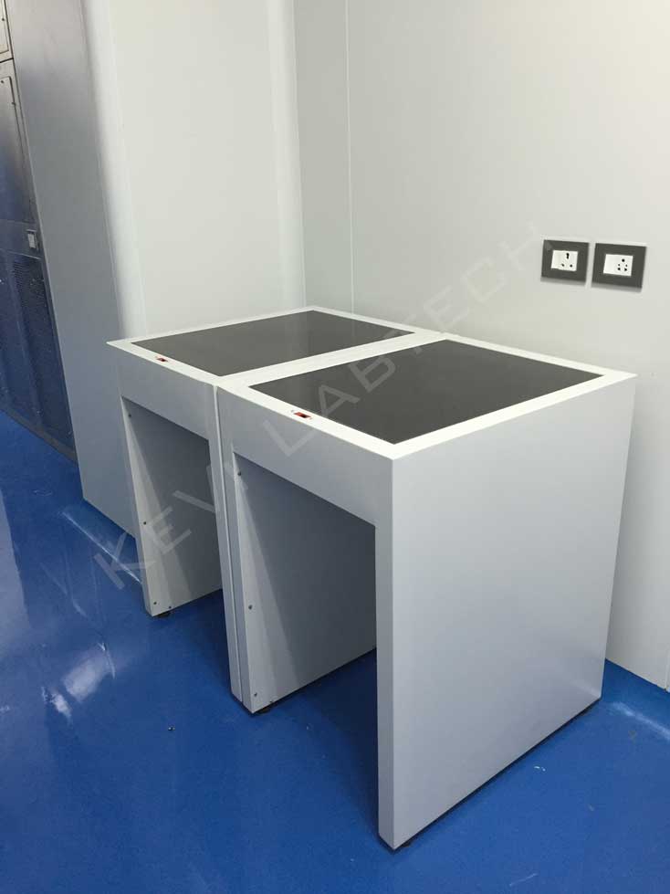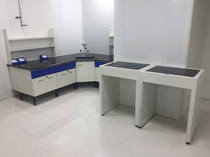 Lab Furniture The Furniture is Classified in various type as may required in Lab depending upon the utility as under… Center Table / Island Table Confirming the specifications as follows : Table is designed with two sided working and center reagent rack at height of 900 mm to make suitable for titration and other work in chemical analysis on standing position.... [Read More] Gallery Wall Facing Working Bench Lab Table / Working Bench - with Pedestal Frame Lab Tables confirming to the international standard and norms are aesthetically designed. These are with pedestal frames for utility and aesthetic reasons, as per the requirement. For details and specification .......[Read More] Lab Table / Working Bench - with Skirtings Lab Tables confirming to the international standard and norms are aesthetically designed. These are with Skirting for utility and aesthetic reasons, as per the requirement. For details and specification .......[Read More] Corner Table Table Top made of 18 mm to 20 mm Thick Black Granite supported with Marine Ply Sheet. The module is made of 18 gauge CICA/ GI Sheet finished with powder coating. Frame : Pedestal 30x30mm Powder Coated. Anti-Vibration Table